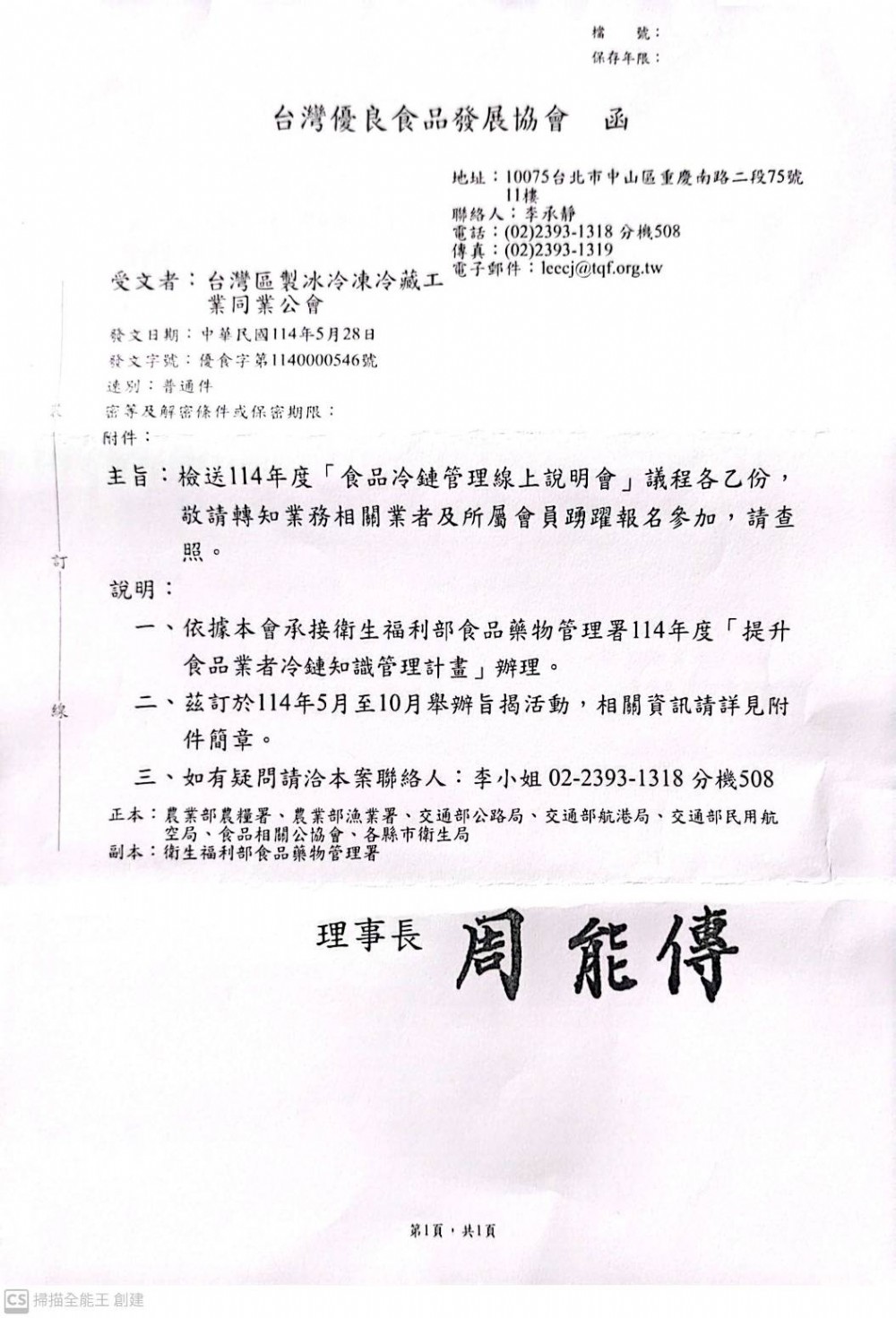 敬啟者,您好: 食品產業新未來,從「品質」與「安全」雙軌前行!
